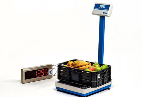 Indicador digital de peso con ángulo de visión regulable montado sobre columna de 80 cm.