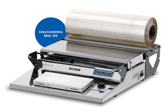 y laterales de chapa esmaltada. El film se ubica en la parte superior de la máquina.